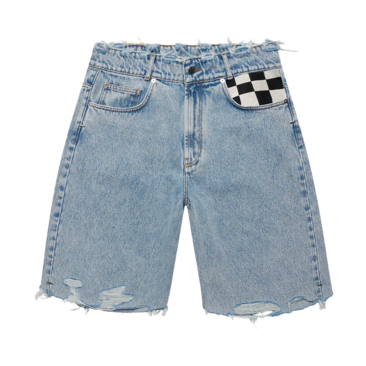 ASKYURSELF - BAGGY CHECKERED DENIM SHORTS