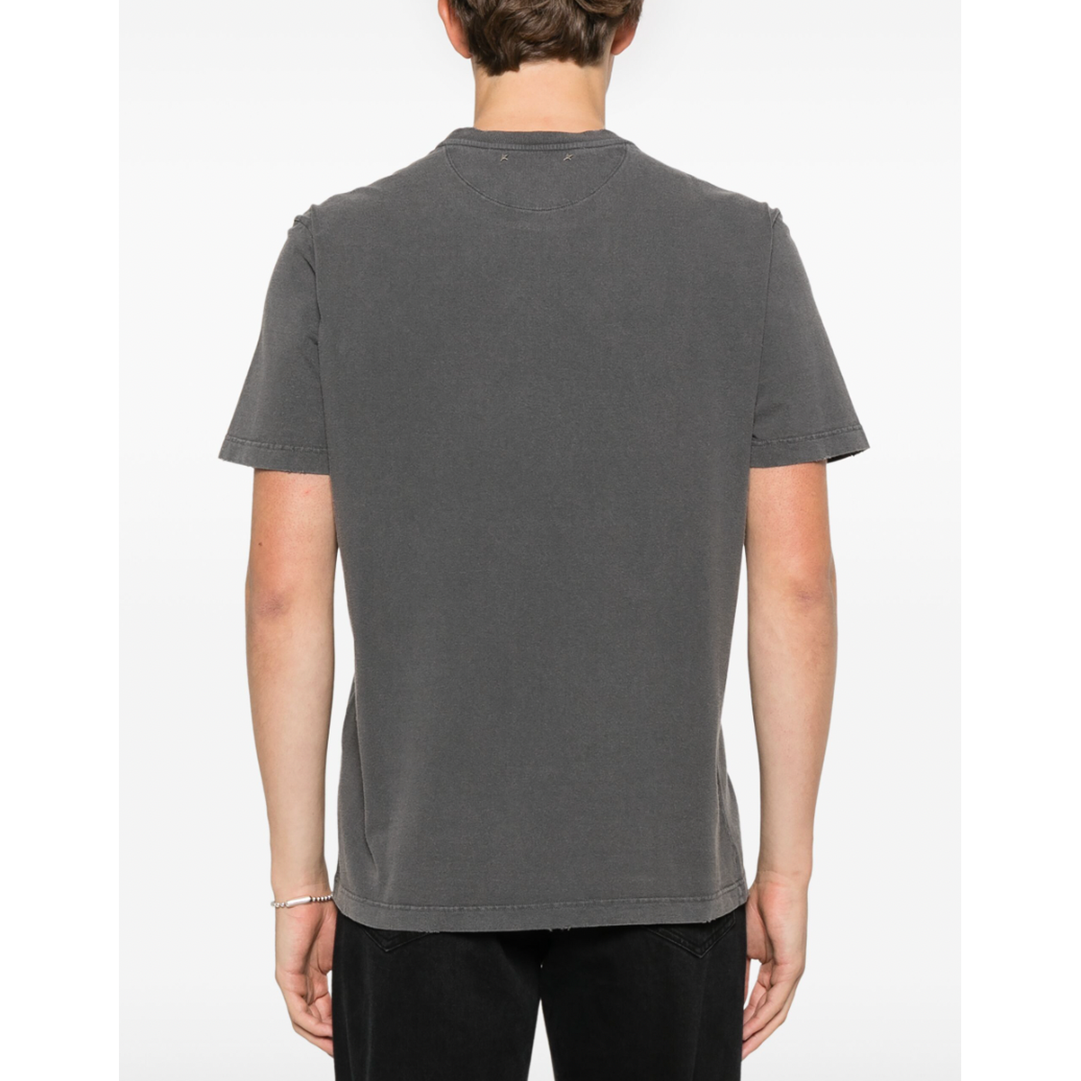 logo-print short-sleeve T-shirt from Golden Goose featuring anthracite grey, cotton, jersey knit, logo print to the front, round neck, short sleeves and straight.