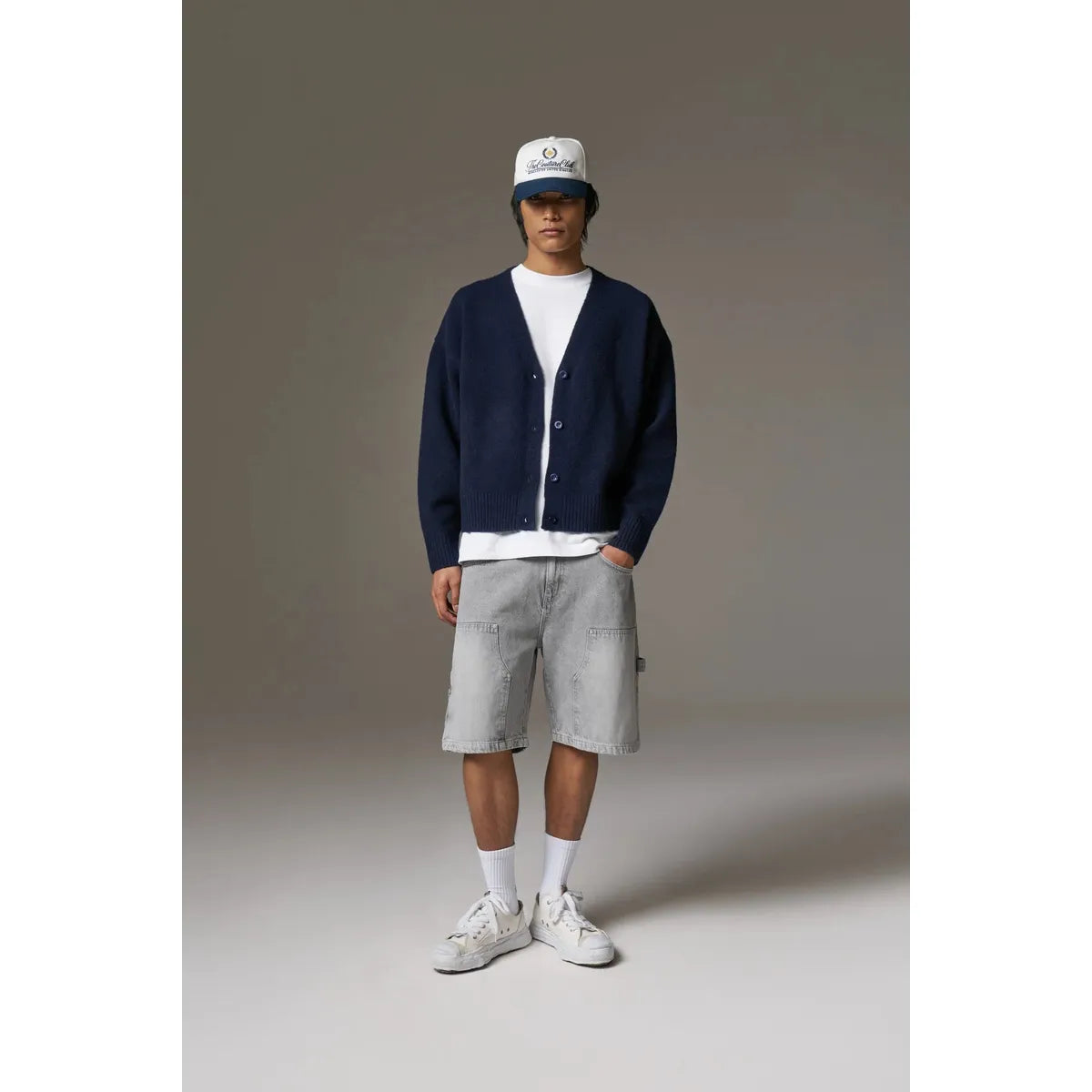 - Coin pocket detailing within right front pocket with brushed silver rivets