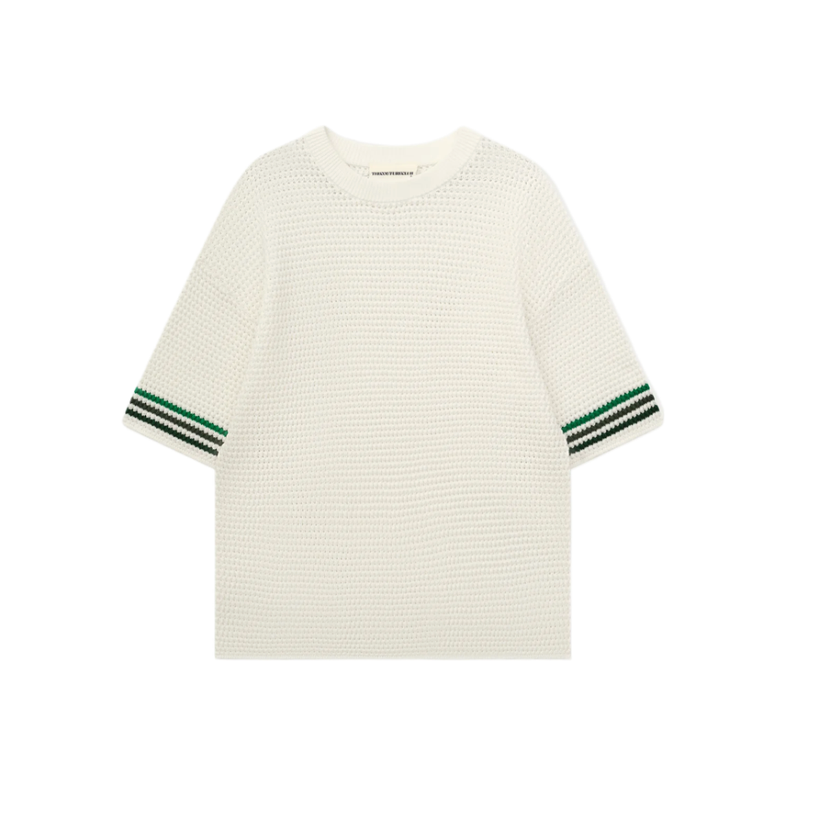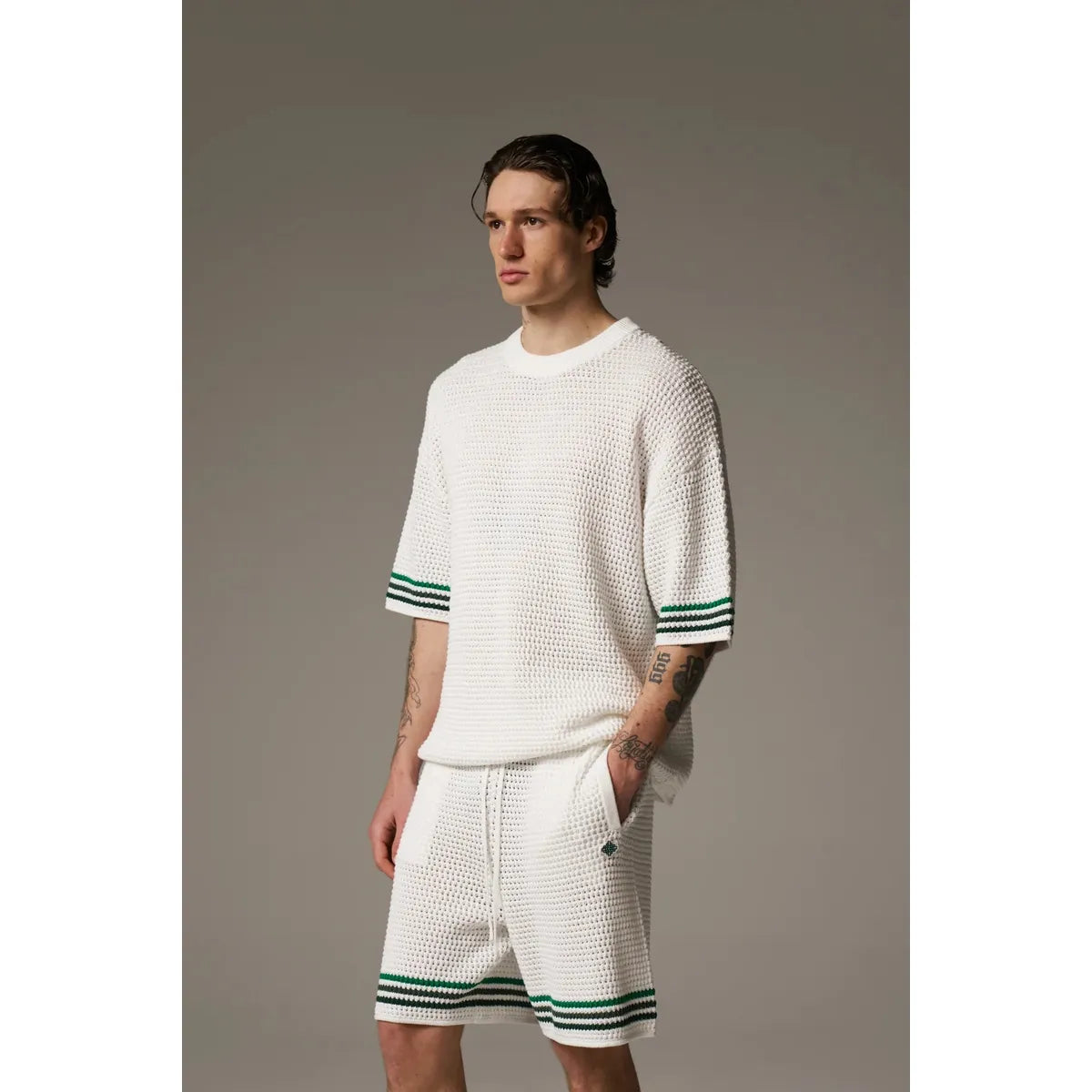 The Couture Club Stripe Crochet Knit White T-Shirt