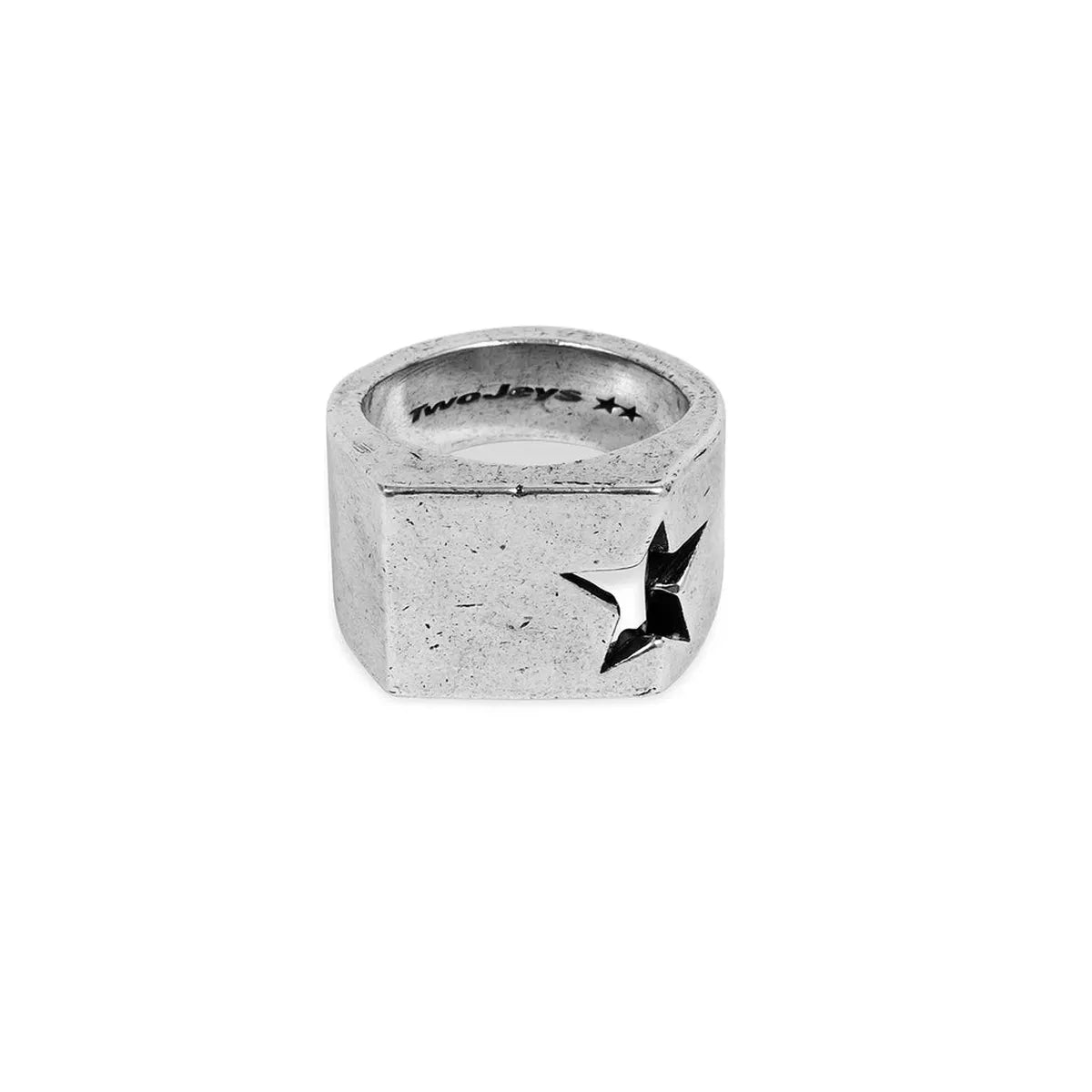 Falling Star Ring with a new TwoJeys shape, handcrafted & vintage feeling details. Brass base with a high quality 12 microns silver bath.